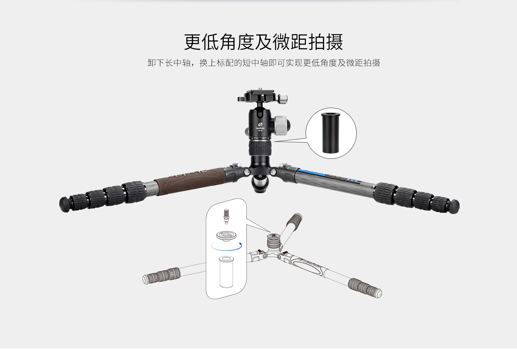 徕图/Leofoto LX穿梭者系列 5节22mm管、180°反折碳纤维三脚架;双全景32mm球体云台丨轻装出行
